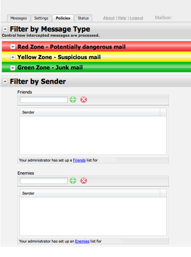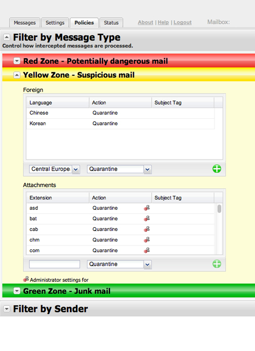 Filter By Sender Settings