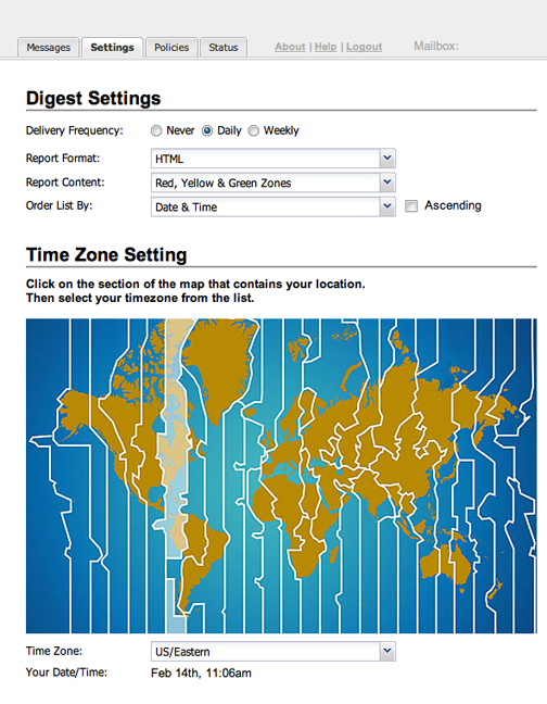 Email Filter Digest and Time Zone Settings